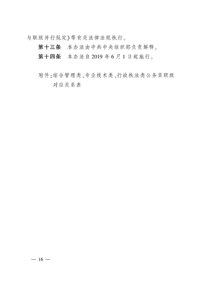 中共中央组织部关于印发«公务员职务与职级并行制度实施方案»等5个文件的通知(中组发〔2019〕10号)(自2019年6月1日起实施)