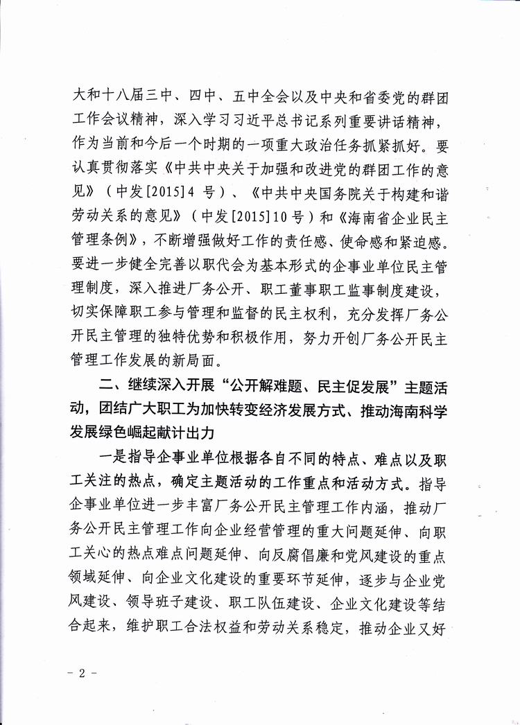 海南省2016年厂务公开民主管理工作意见(琼厂开组办发〔2016〕2号)
